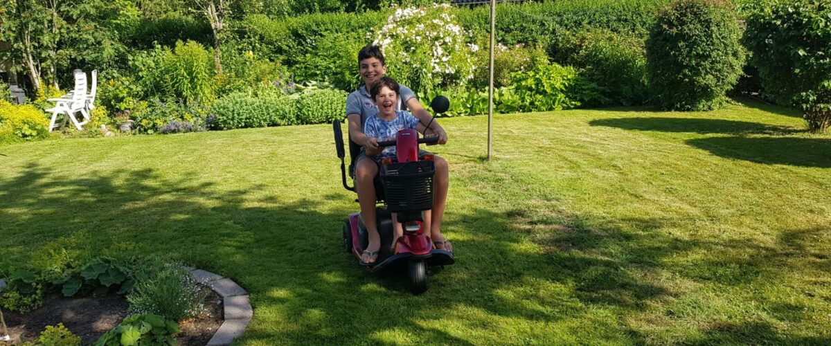 Roland en Ryan aan het toeren in de tuin
